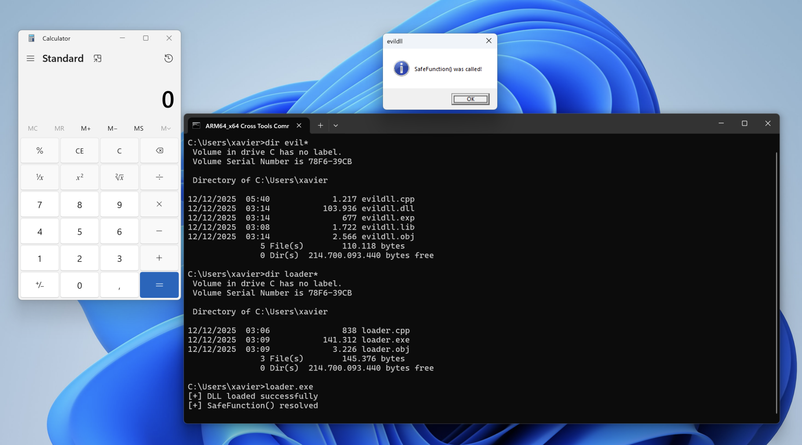Let’s compile the DLL, the loader and execute it: