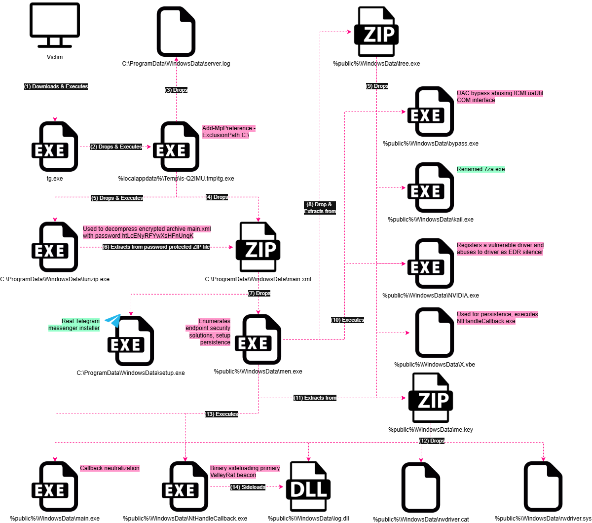 “On the surface, victims see a normal installer,” Fielenbach said. “In the background, the malware stages files, deploys drivers, tampers with defenses, and finally launches a ValleyRat beacon that keeps long-term access to the system.”