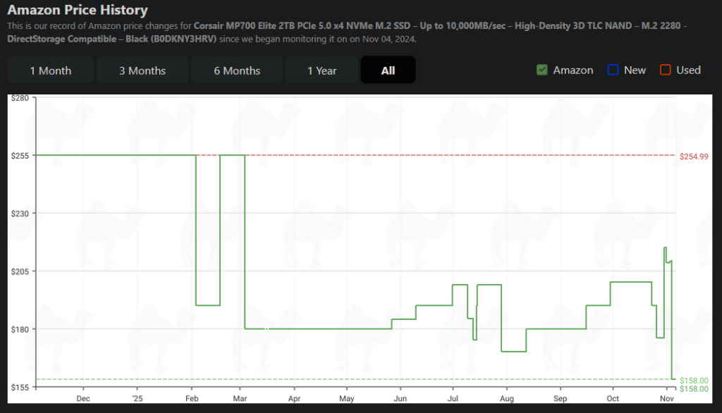 We stumbled across the Corsair MP700 Elite 2TB Gen5 SSD on sale with a whopping 12% shaved off its asking price, well before the Black Friday SSD deals even go live. So, if you were meaning to expand your storage, this is the perfect opportunity to do so because instead of costing you $179.99, you’ll only have to pay $158.